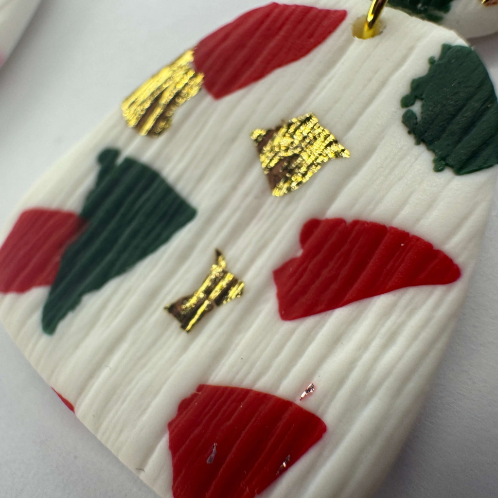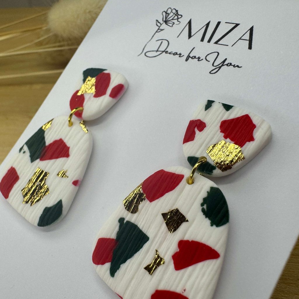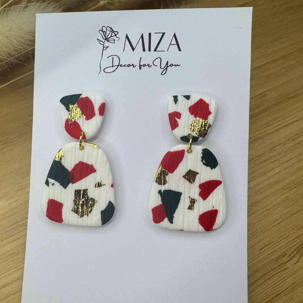 2 részes tompa trapéz fülbevaló - fehér - piros, zöld, arany