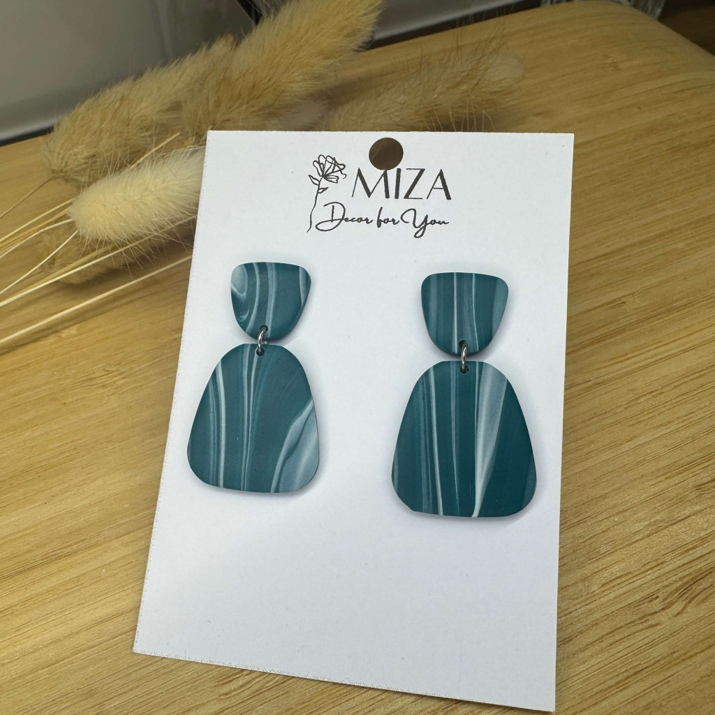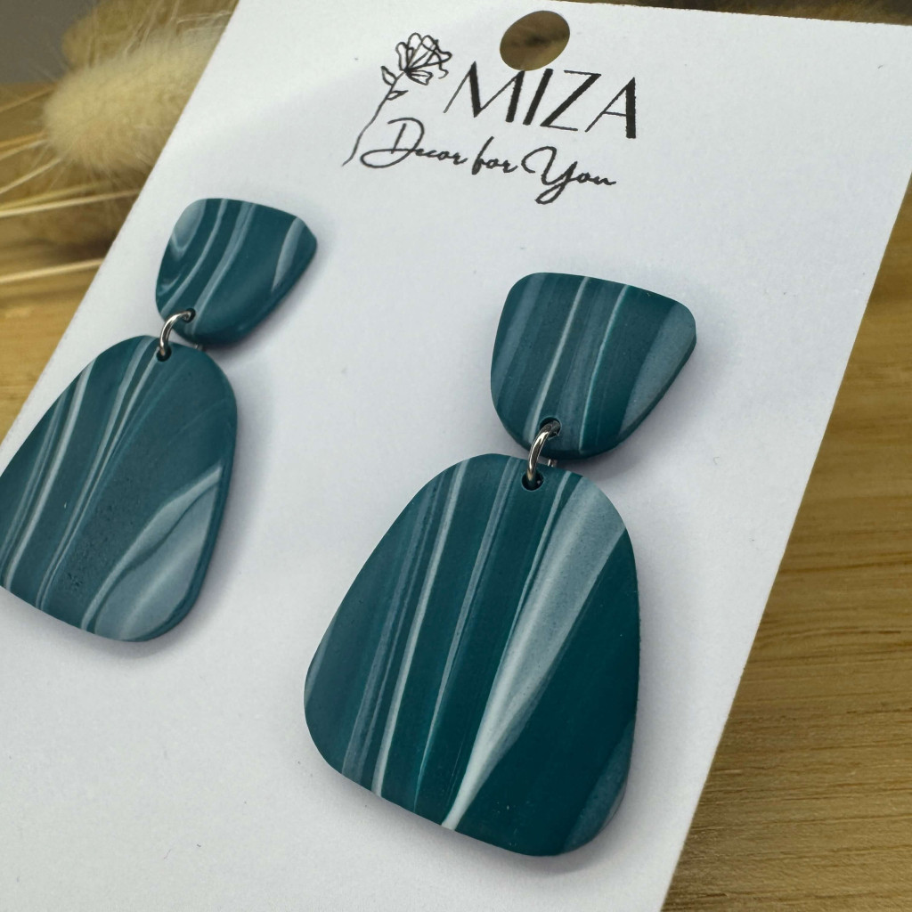 2 részes tompa trapéz fülbevaló - fenyőzöld - csíkor