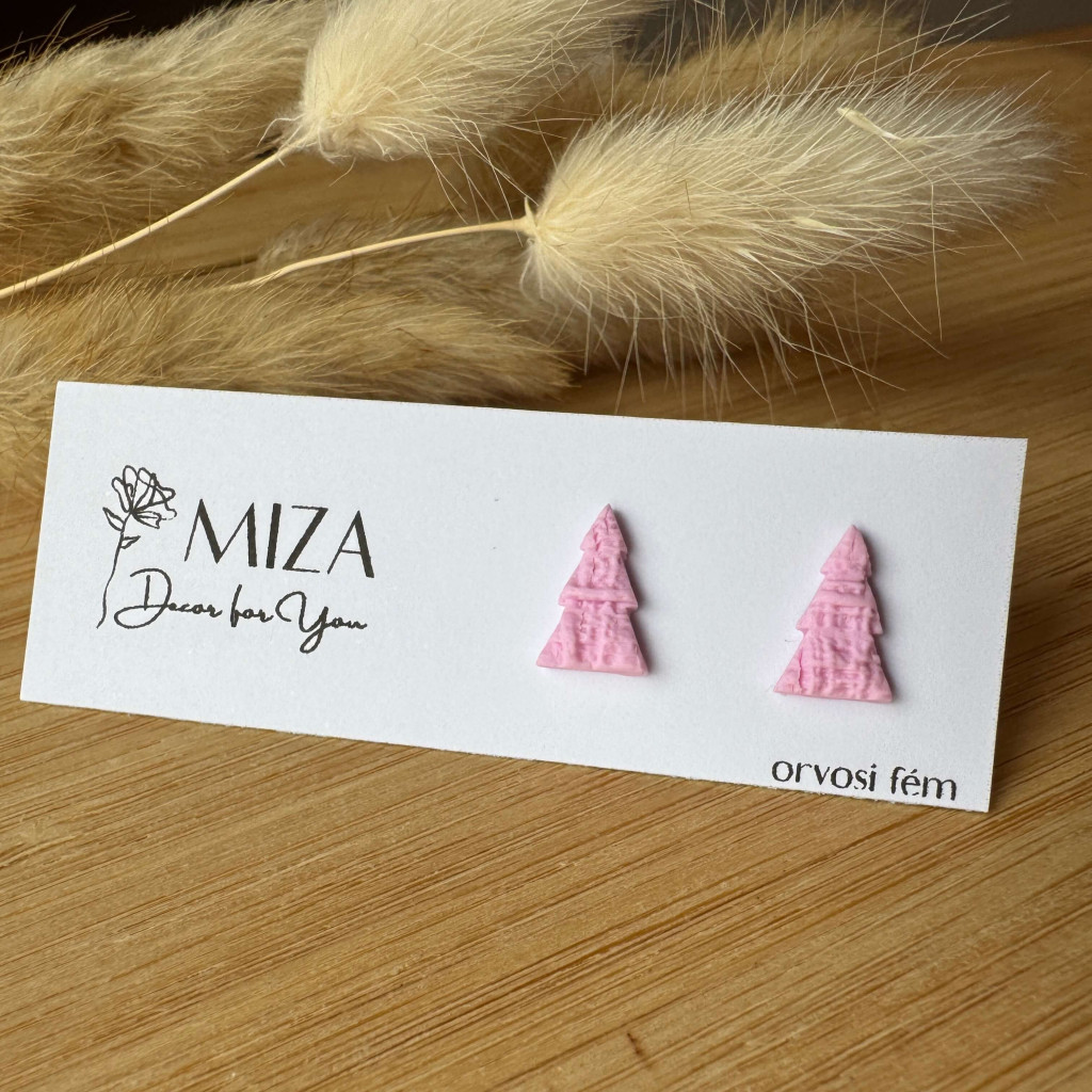 Fenyőfa bedugós fülbevaló - rózsaszín