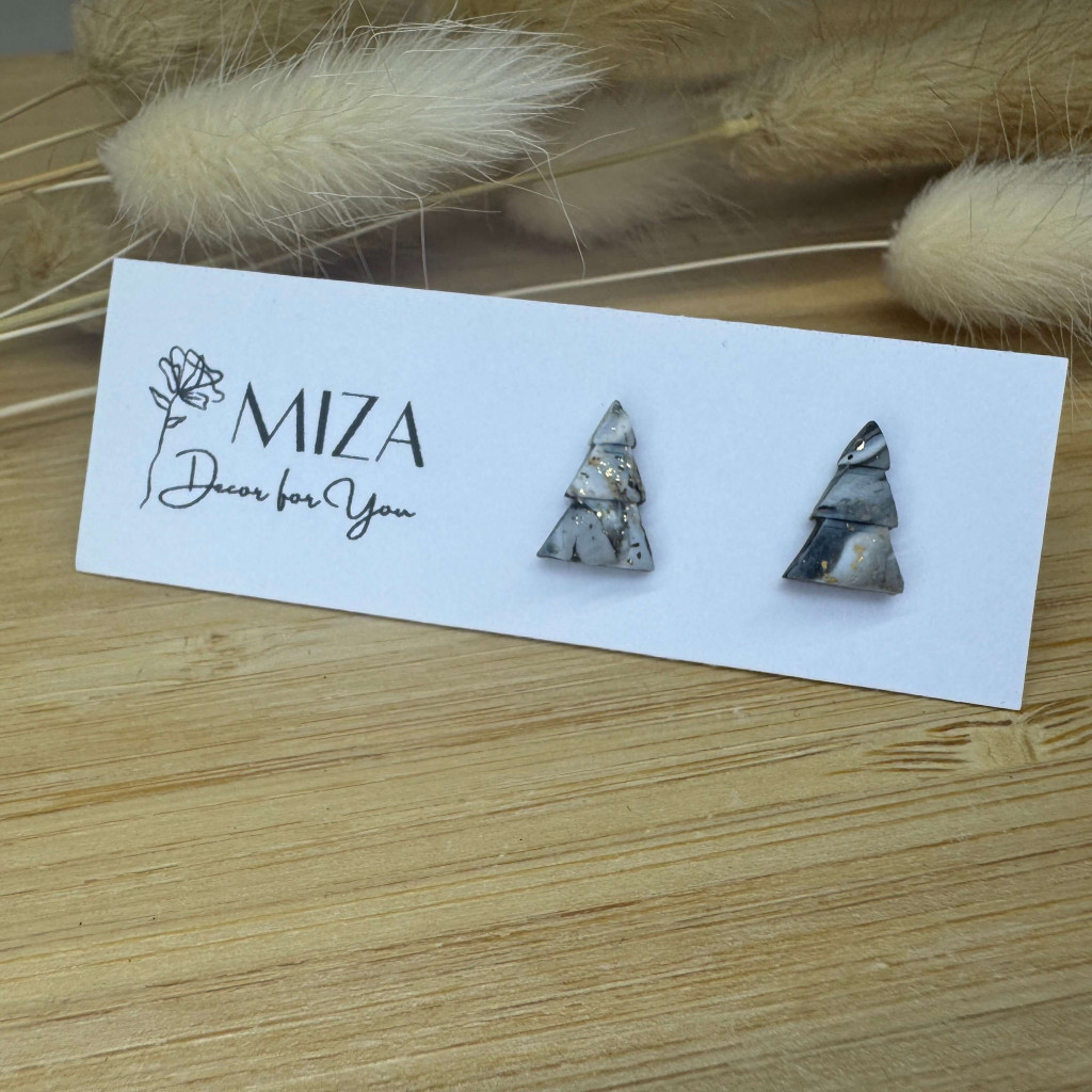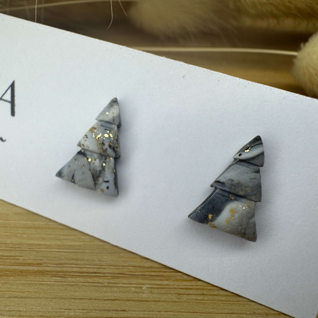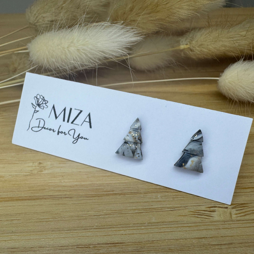 Fenyőfa bedugós fülbevaló - szürke tarka