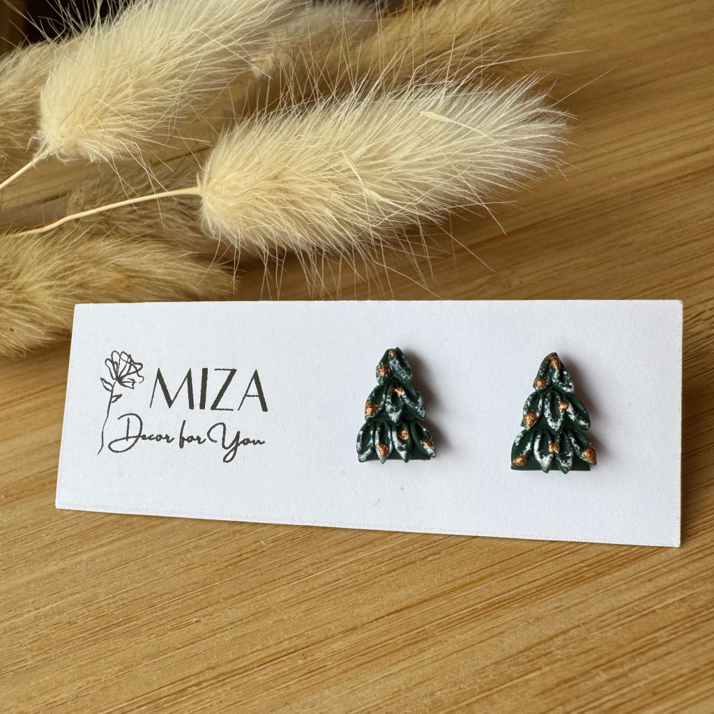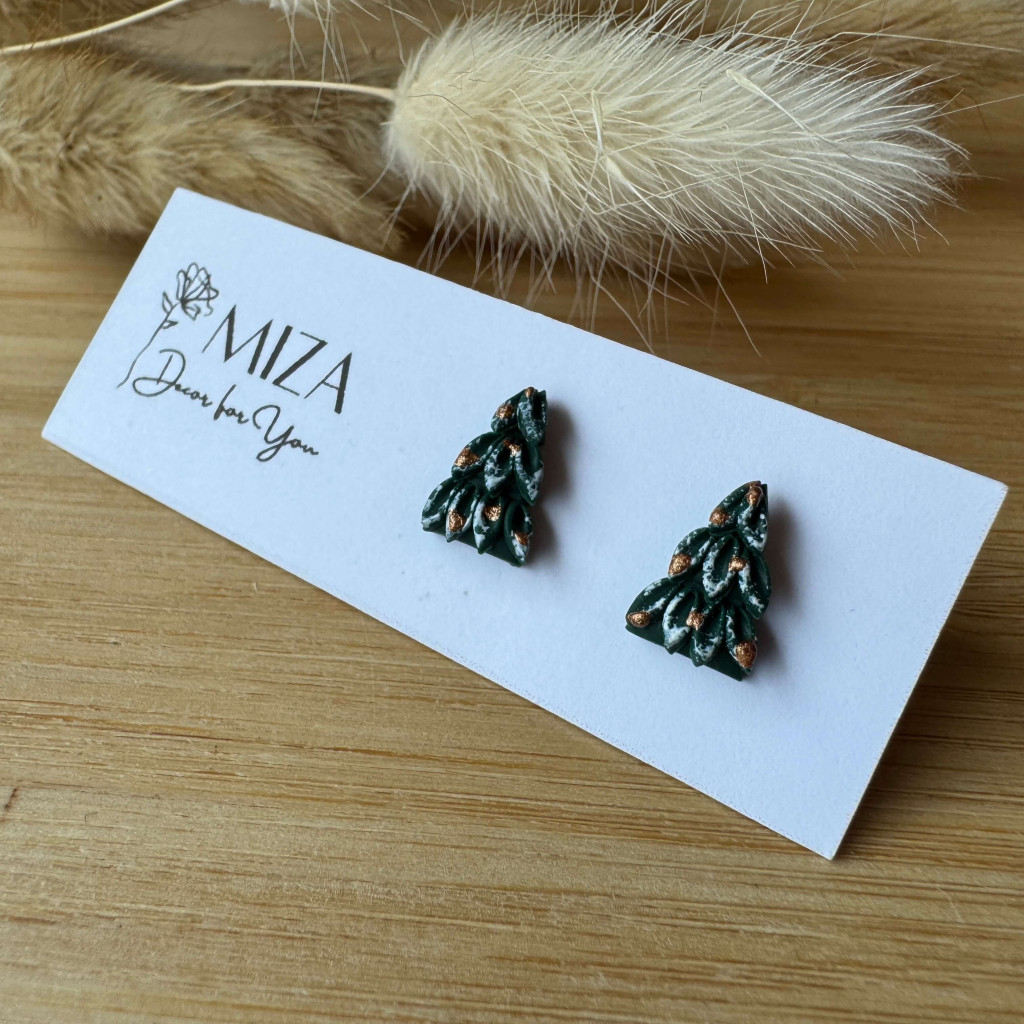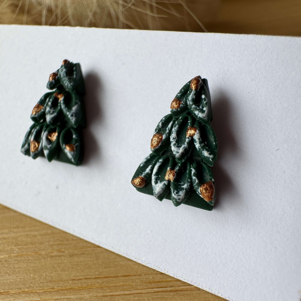 Karácsonyfa bedugós fülbevaló - arany pöttyökkel