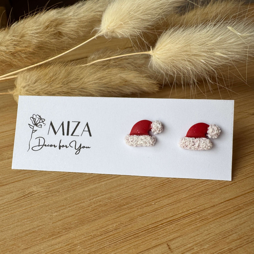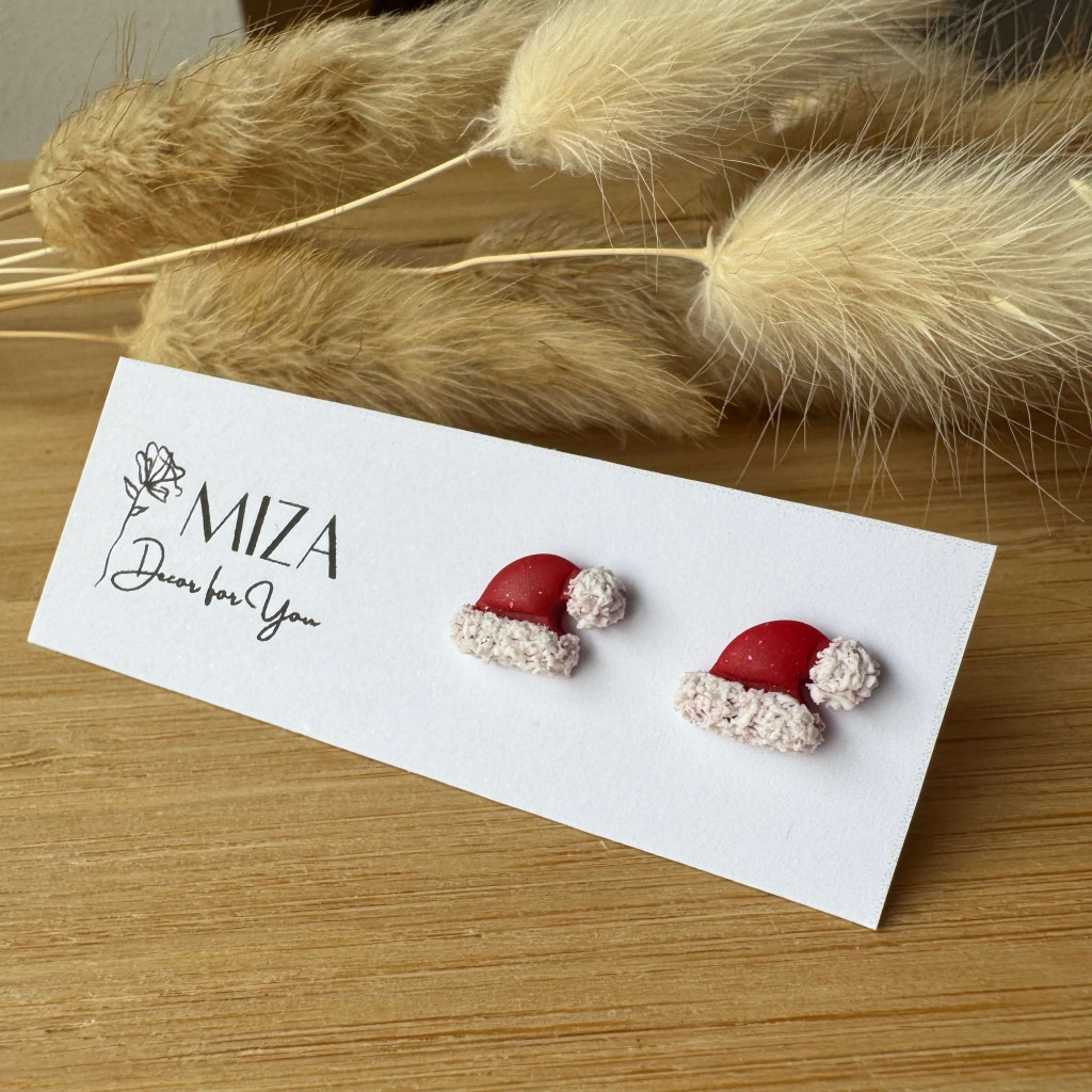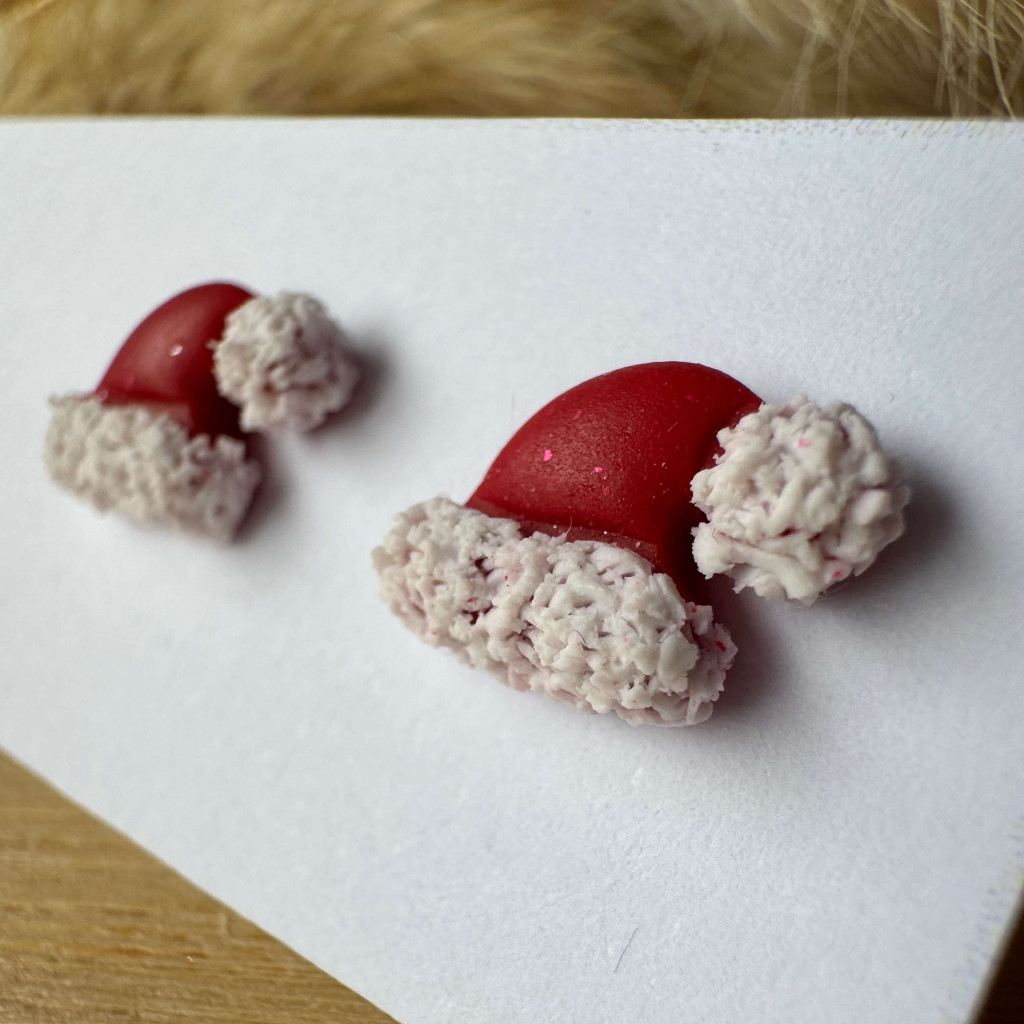 Mikulás sapi bedugós fülbevaló - piros-fehér