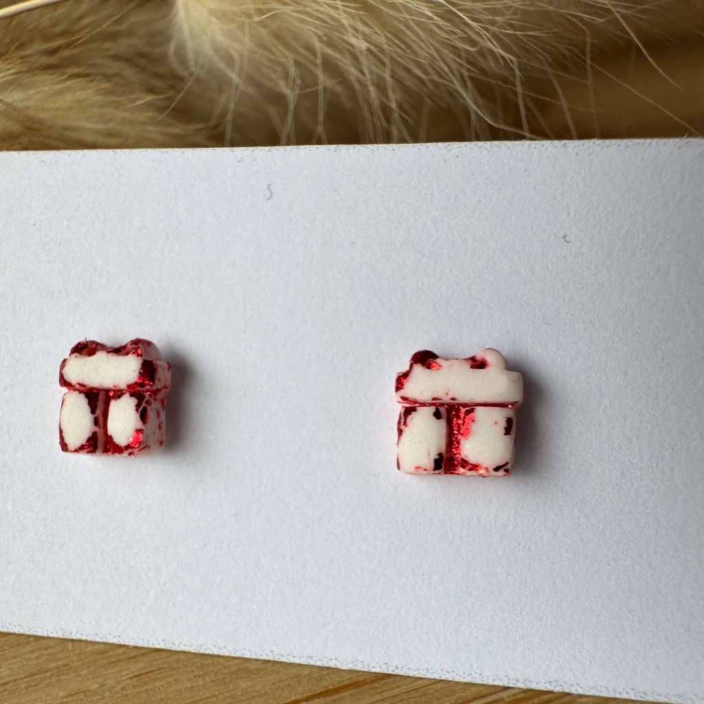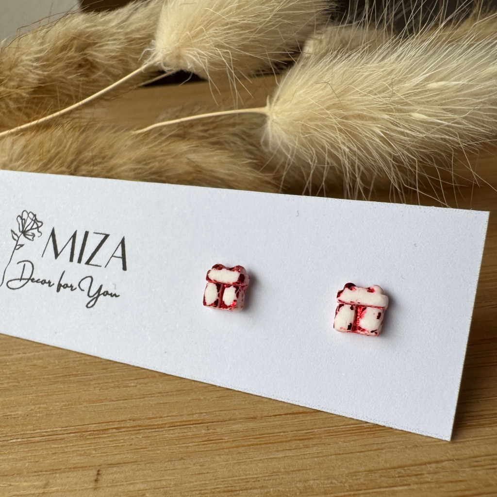 Mini ajándék doboz bedugós fülbevaló - fehér-piros