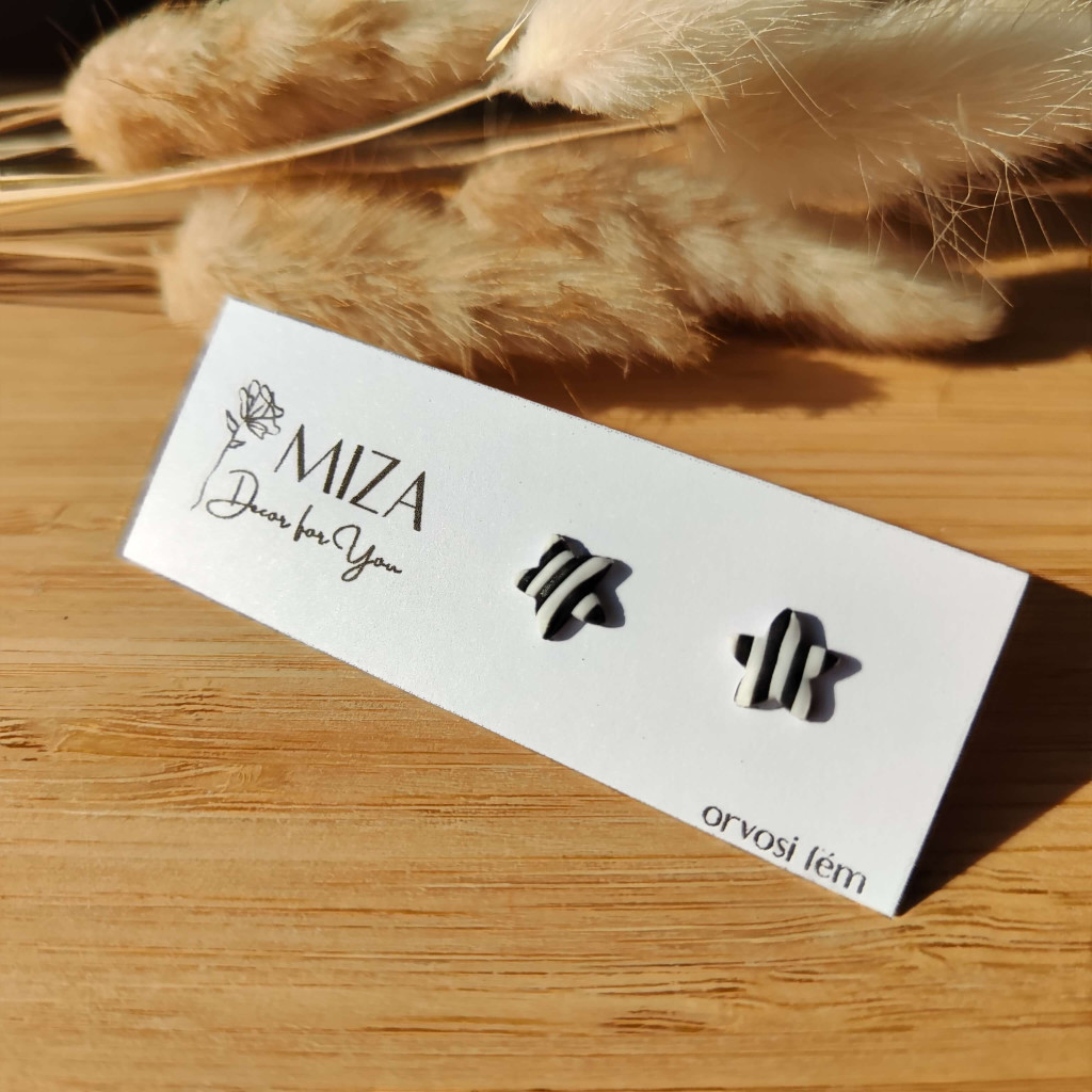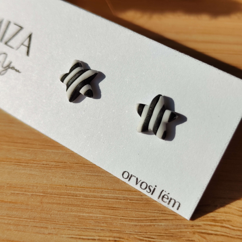 Mini csillag bedugós fülbevaló - zebra