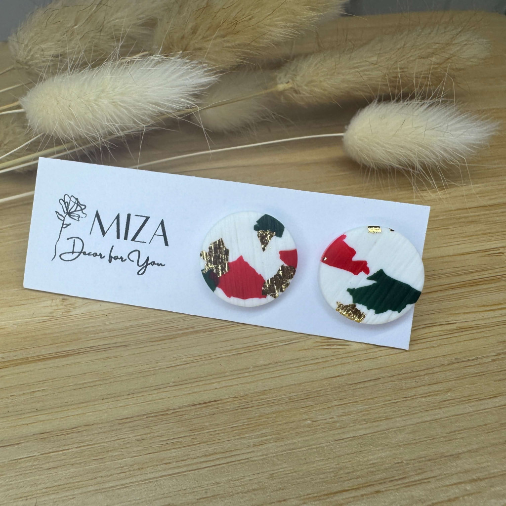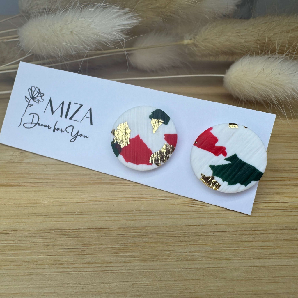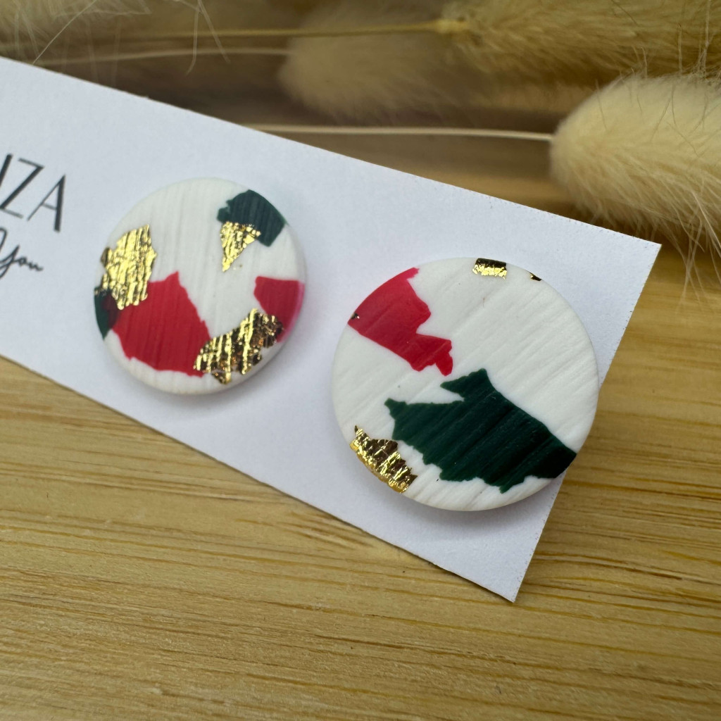 Nagy méretű pötty bedugós fülbevaló - karácsonyi