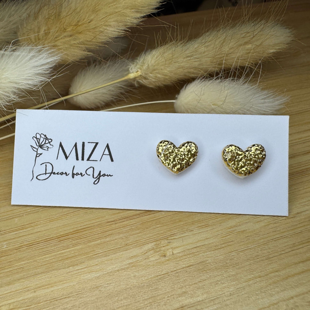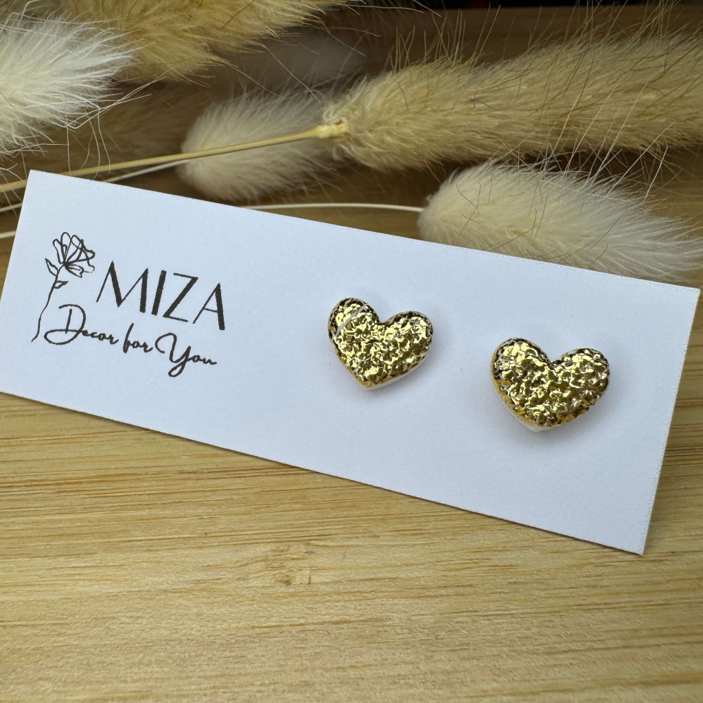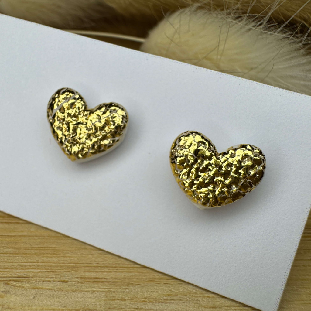 Szív bedugós fülbevaló - arany füstfóliás