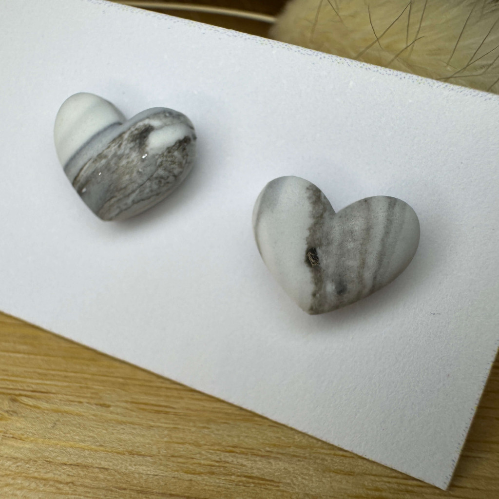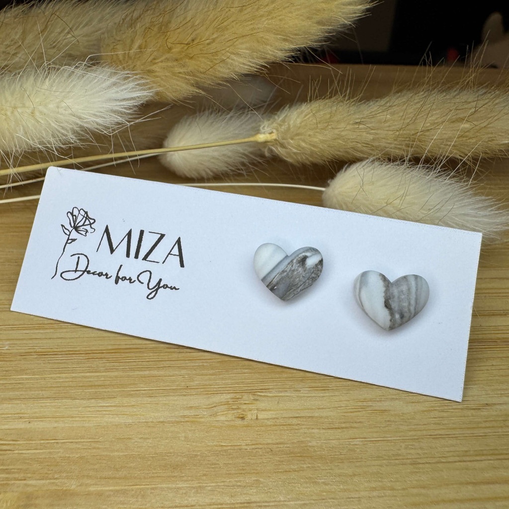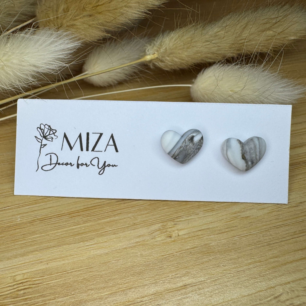 Szív bedugós fülbevaló - fekete-fehér márványos