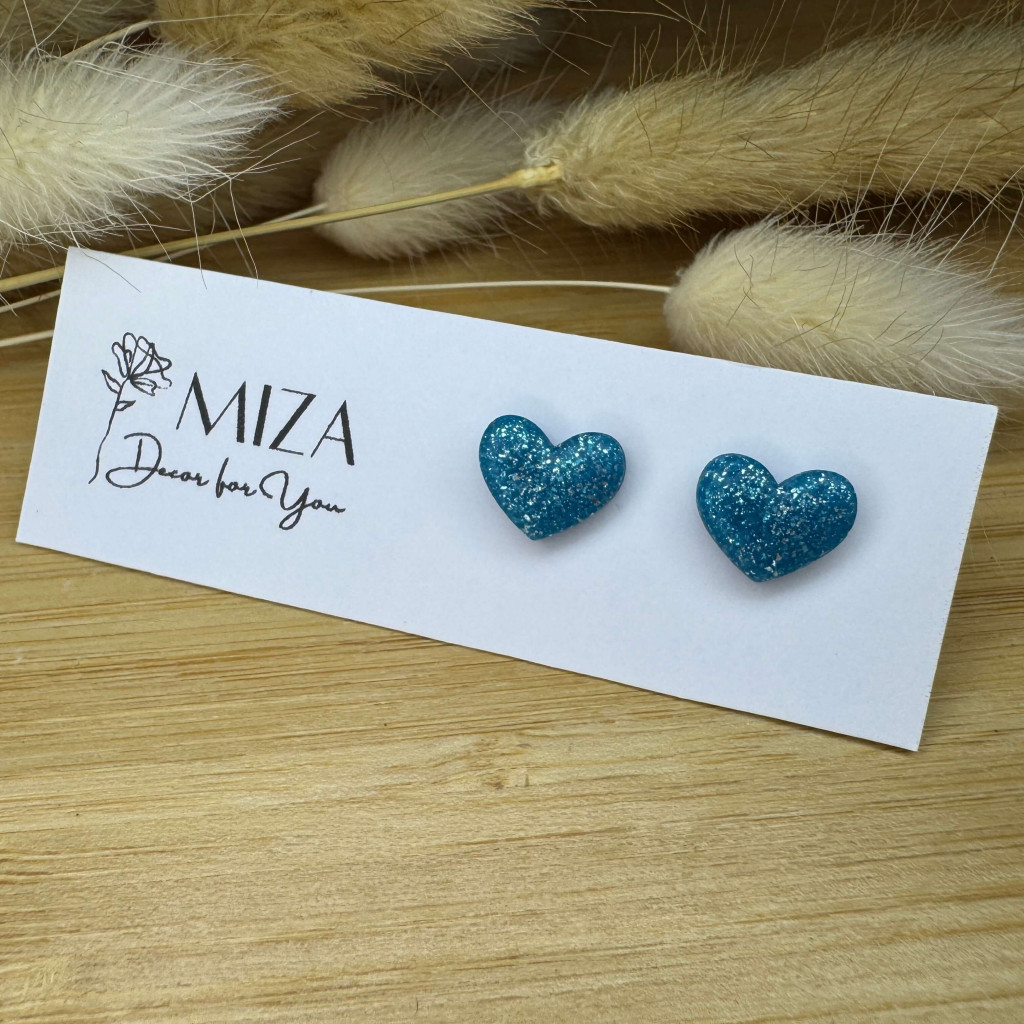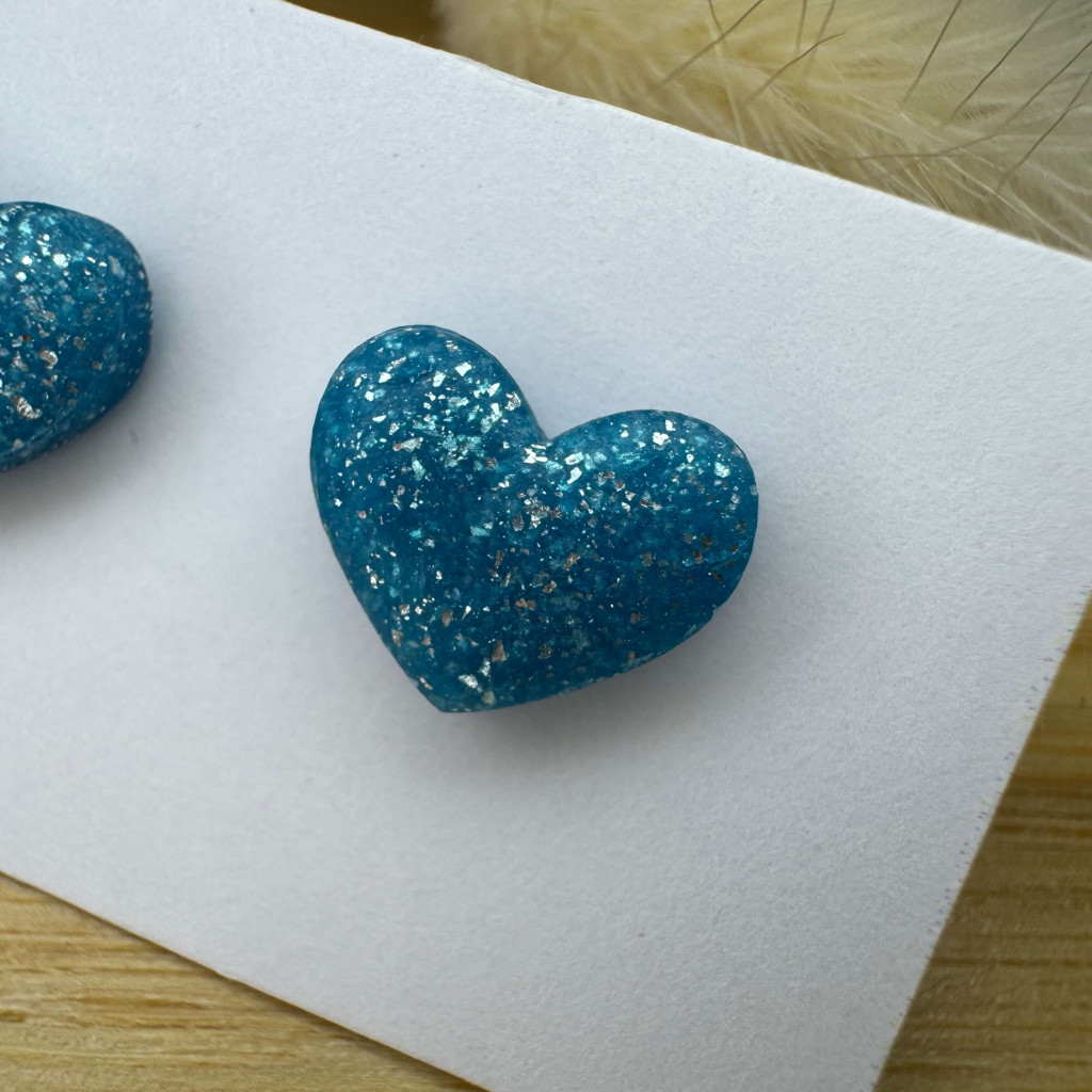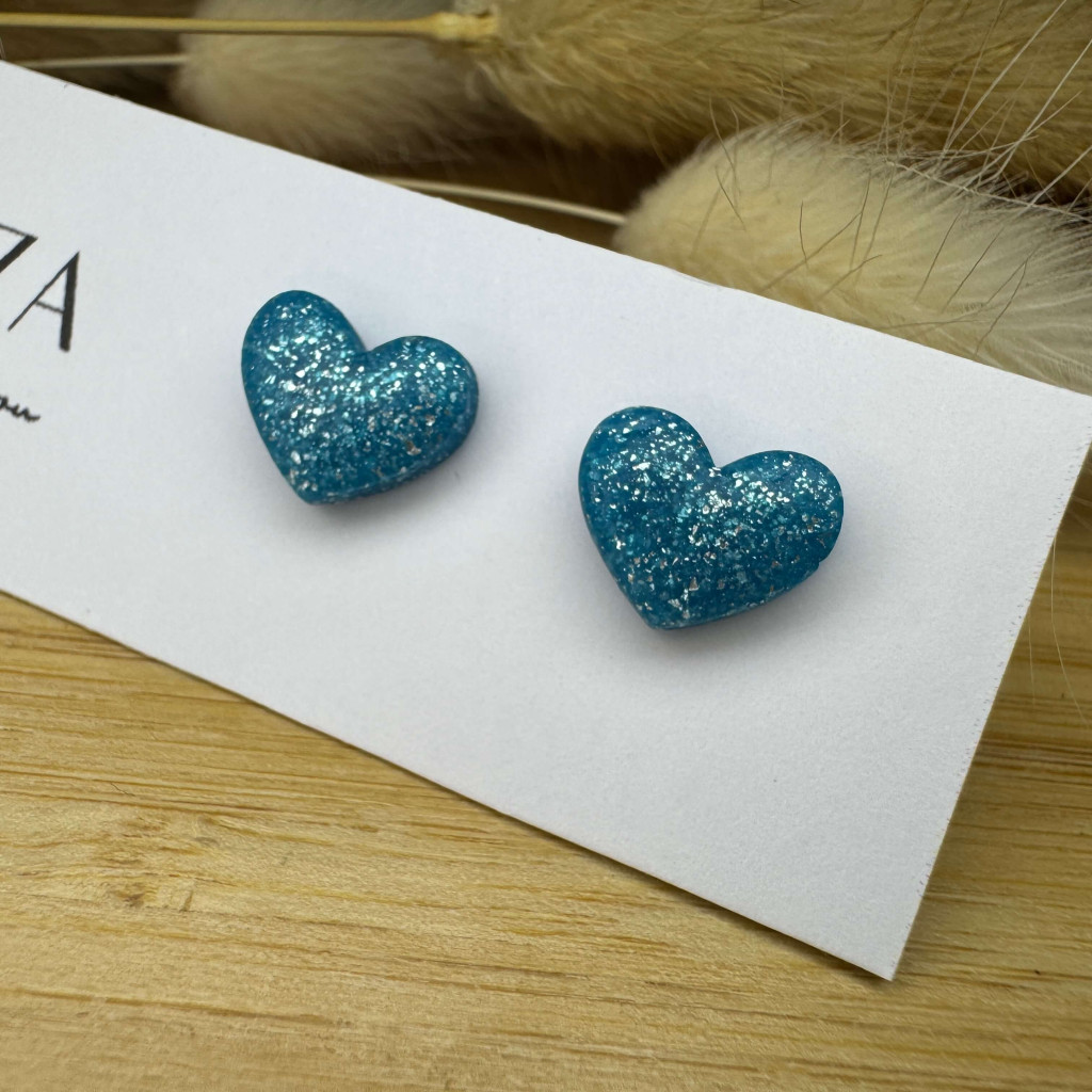 Szív bedugós fülbevaló - kék - ezüst